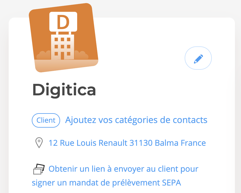 Tout simplement en se rendant dans la fiche de votre client et en cliquant sur : « Obtenir un lien à envoyer au client pour signer un mandat de prélèvement SEPA »