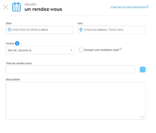 2) Dans la partie échanges sur la fiche client, vous pouvez cliquer sur le “+” pour créer un échange :